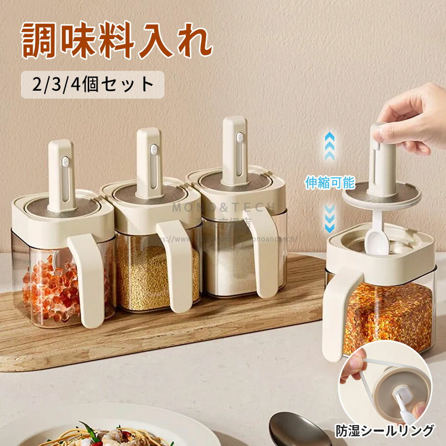 2910 調味料ポット 調味料入れ 2個セット スプーン付き 調味料ラック 調味料容器 調味料ケース 密閉容器 保存容器 収納 湿気防止 台所用品 [ |